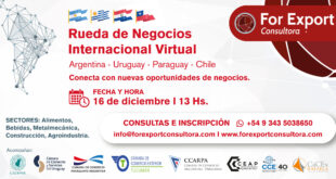Los invitamos a participar de la Rueda de Negocios Virtual, de la cual participarán empresas de los siguientes países: Argentina, República Oriental del Uruguay, Paraguay y Chile, los Sectores convocados son de Alimentos, Bebidas, Construcción Metalmecánica y Agroindustria. El evento es organizado por For Export Consultora con la colaboración de las …
