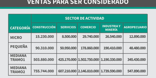 Para considerarse una mediana empresa «tramo 1», el tope más alto permitido de ventas anuales es de $503,88 millones para las de la construcción, $425,17 millones para servicios, $1.502,75 millones para comercio, $1.190,33 millones para industria y minería, y $345,4 millones como máximo para acceder en el agropecuario.