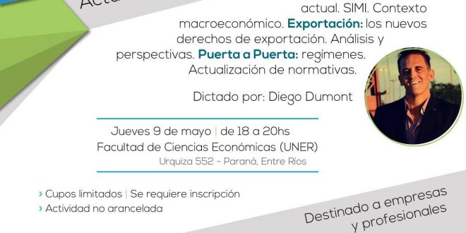 Junto con Facultad de Ciencias Económicas – UNER organizamos la charla «Importación y Exportación: actualidad, normativa y perspectivas» dictada por Diego Dumont. La misma está dirigida a empresas y profesionales de la provincia de Entre Ríos.