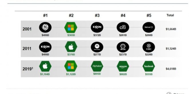 Un dato es revelador: las 5 mayores compañías en capitalización bursátil en Estados Unidos en 2001 eran WalMart, Exxon, Citibank, Microsoft y General Eelectric, mientras que en 2019 el ránking está dominado por compañías tecnológicas surgidas del capital emprendedor, como Apple, Microsoft, Alphabet, Facebook. En Latinoamérica, actualmente ese top five lo lideran empresas de la vieja guardia como Petrobras, Itau, Ambey, Bradesco y Vale.