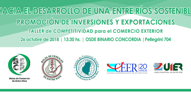 El encuentro se realizará el vienes 26 de octubre en el salón de OSDE Binario, Filial Río Uruguay (Pellegrini 704, Concordia), la invitación es extensiva a los departamento Federación, Feliciano, Federal, San Salvador, Villaguay, Colón y Concepción del Uruguay. Es convocado por la Cámara de Comercio Exterior, la Bolsa de Comercio, la Unión Industrial, la Bolsa de Cereales, y el Consejo Empresario de Entre Ríos.
